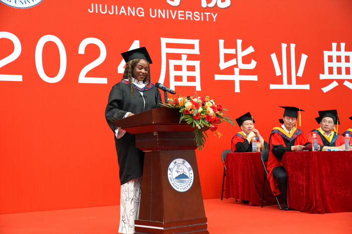 “感谢九江学院给我们留学生提供这么好的学习机会,感谢每一位老师课堂内外的奉献精神。”留学生代表、省外国留学生奖学金获得者,国际教育学院2018级临床医学专业留学生榴莲用流利的中文表达了对母校的深深怀恋与感激之情。榴莲深情地表示:“无论我将来走到哪里,‘竞知向学,厚德笃行’的校训都会铭记在心,鼓励我不断进步。”