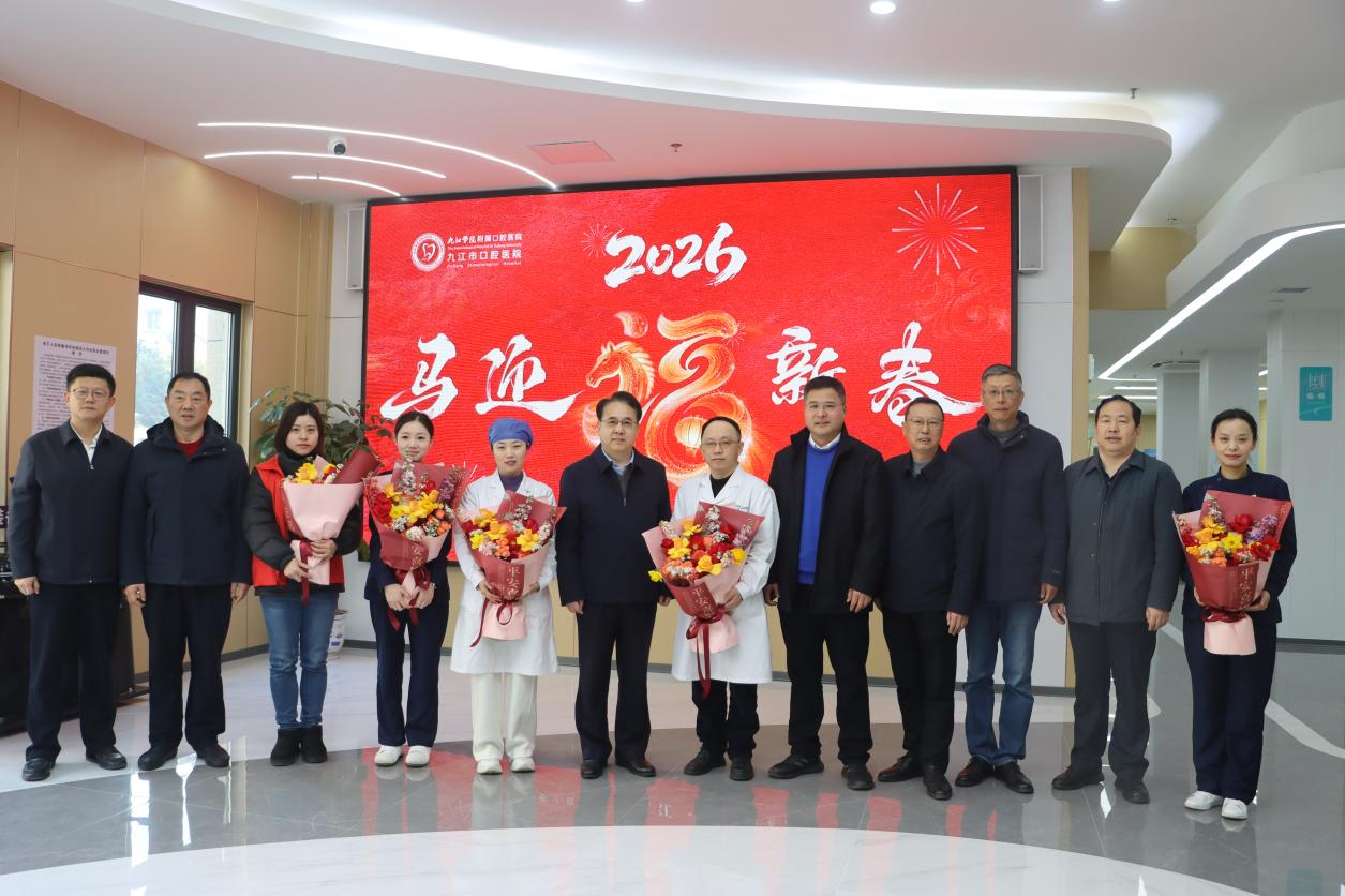 李明斌一行首先来到附属口腔医院,深入门诊大厅和临床诊室,与医护人员亲切握手交谈,详细了解大家的工作和生活情况,感谢大家一年来在守护群众口腔健康、推动医院发展方面的辛勤付出,并致以新春祝福。