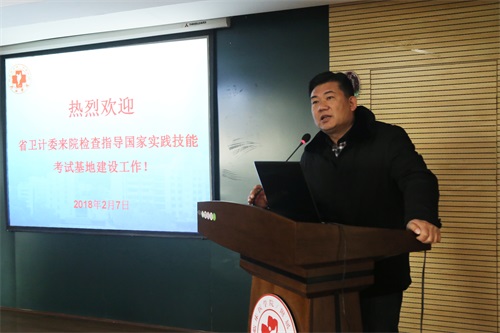 临床医学院/附属医院党委书记张南华对省卫计委领导来该院指导工作表示热烈欢迎,表示该院一直重视基地的创建工作,多次召开协调会研究相关事宜,我校党委行政、九江市卫计委也对创建工作给予了大力支持。临床医学院/附属医院已举办过两次全国医师资格实践技能考试,均受到了省里的表彰。现阶段虽然该院用房紧张,但在新门诊综合大楼投入使用后,问题都将迎刃而解,我们有信心能把国家实践技能考试基地工作开展好。纪委书记刘英明从医院概况、近两年医师资格考试情况及现阶段基地的建设情况等方面进行了详细的汇报。