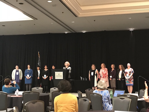 参会教师代表、美国外语教学委员会年度优秀教师金璎作在开幕式上致辞。她说:“我是一名汉语老师,在中国,我们有一个形象的比喻,教师是园丁,学生们是花朵。我想,这个比喻也可以用到我们所有的外语教育工作者身上。世界是一个大花园,每一个语种都是一朵鲜艳的花,有着自己的芬芳和特色。作为外语教师,我们有责任和义务让更多的人走进这个大花园,探寻和领略每朵花的独特魅力。”