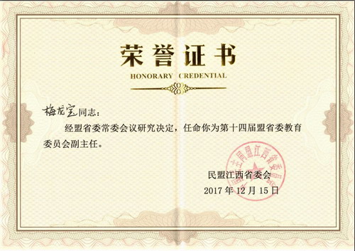 会上,黄菊花代表民盟江西省委为民盟九江市委常委、九江学院委员会主委梅龙宝教授颁发民盟江西省委教育委员会副主任任命书,为民盟九江学院委员会科技支部主委冷清明博士颁发民盟江西省委教育委员会委员聘书。