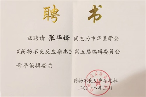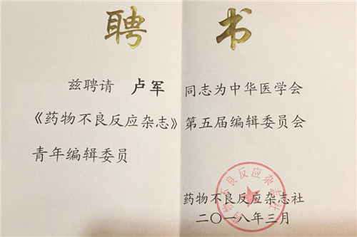 临床医学院/附属医院皮肤科卢军、药学部张华锋获聘《药物不良反应杂志》青年编辑委员