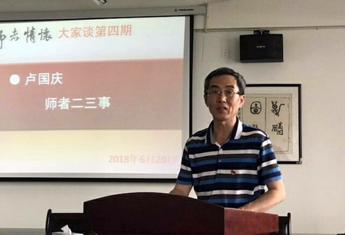 我刚到九江师专的时候,记得系里戴绳祖书记找我谈过一次话,他说:“小卢啊,来学校工作好哇,我是过来人,无论什么时代,教师都是不错的职业呀,教师是传承人类文明的工作,社会越是动乱,教师职业越显相对安定。”戴书记的这番话,我能感受到其中的意味深长。他是一位建国前的干部,比我父亲还大5岁。他24岁就做了星子中学的校长,反右和文革时期都受过很大的冲击。他对教师工作始终爱而不悔,对我的这番话没有半点说教的腔调,而是语重心长的切身体会。一个长者与后生的娓娓谈心,怎能不坚定我终身从教的信念?!事实上,过去三十六年的从教生涯中,教师待遇在社会上虽然有起有伏,但我从来没有动摇过对这份职业的喜爱。