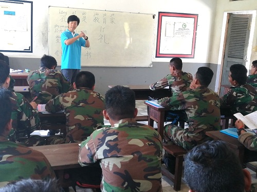 911旅特种伞兵部队汉语中心教师向学生讲解了孔子思想:“‘仁’字可拆成‘人’和‘二’,表示两人之间平等尊重,推己及人,互相关爱;韩桑林大学汉语中心教师巧用一组数字“2569、3000、72”介绍孔子——“今年是孔子诞辰2569年,他有3000多名学生,其中贤者72人”。