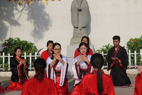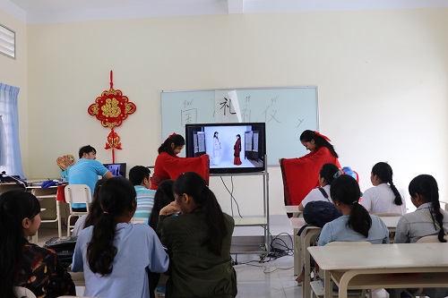 暹粒吴哥高中孔子课堂展示汉服礼仪