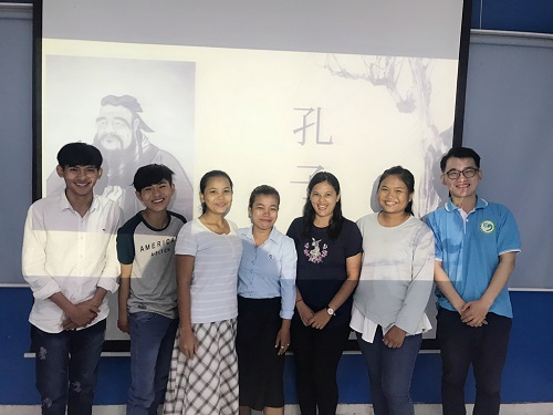 陆军学院汉语中心师生一起观看了电影《孔子》,并为学生讲解了孔子“知之为知之,不知为不知”等经典名言;茶胶青年联合会汉语中心教师则着重介绍了孔子“礼”“节”“道”的饮食思想,进而全面介绍了“食不厌精,脍不厌细”的中国饮食文化。