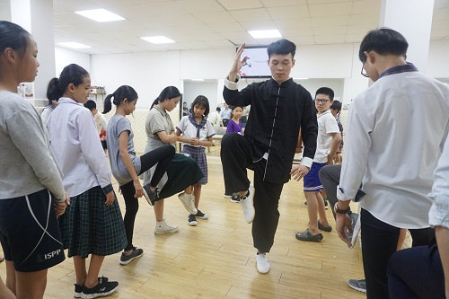 911旅特种伞兵部队汉语中心教师向学生们展示了中国传统礼节---作揖礼和抱拳礼,并教习了少林五步拳;陆军学院汉语中心、金边中国文化中心则选择了太极拳,简单的拳理拳法介绍后,师生便一起操习起来,招招式式皆显示出中华武术的精气神韵,武道精神化为一股气,凝聚成一座别样的中柬文化交流之桥。