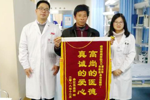 经密切观察病情、积极救治、精心护理,两天后患者意识逐渐恢复,神志清楚,但血压仍需升压药物维持。考虑存在感染性休克,急诊科请骨科会诊后转骨科行右臀部褥疮清创+VSD负压吸引术治疗。经过急诊科、骨科联合治疗,患者病情好转。患者父亲为表感谢,特意送来一面锦旗,赞美附属医院医护人员医德医技,之后返回贵州继续康复治疗。