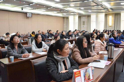 为了引导同学们品读国学经典,弘扬九江文化。12月24日下午,政法学院组织历史教育专业五十余名学生参加了于九江市政府市民服务中心主楼3号会议室举行的九江文化讲坛,此次活动由团委刘梦老师带队。