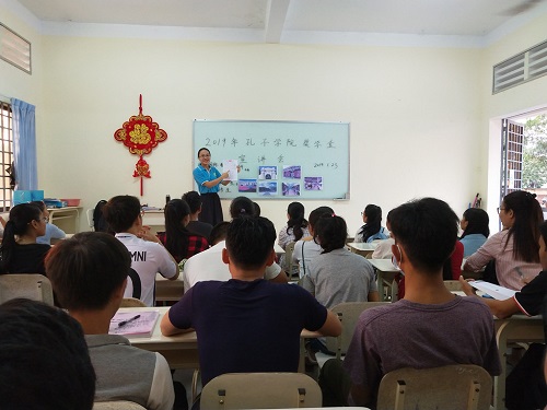 志愿者教师叶鑫为学生讲解孔院奖学金相关内容