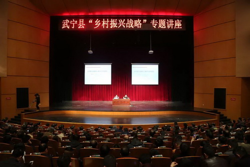 3月5日下午,在武宁县大剧院,旅游与国土资源学院院长李松志为武宁县作了题为“乡村振兴战略”专题培训讲座。武宁县四家班子领导,法检“两长”及其他县级干部,县直及条管单位副科级以上干部;各乡镇党委书记、乡镇长,各村(居委会)党组织书记,驻村第一书记等共计1000余人参加了此次讲座