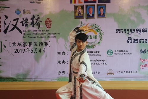 “汉语为桥,天下一家”。2019年5月4日下午,第十八届“汉语桥”世界大学生中文比赛柬埔寨赛区预赛于柬埔寨皇家科学院孔子学院三楼多功能厅举行。此次大赛由中国驻柬埔寨大使馆和孔子学院总部/国家汉办主办,柬埔寨皇家科学院孔子学院承办,柬埔寨福建总商会、太子地产慈善基金会共同协办。