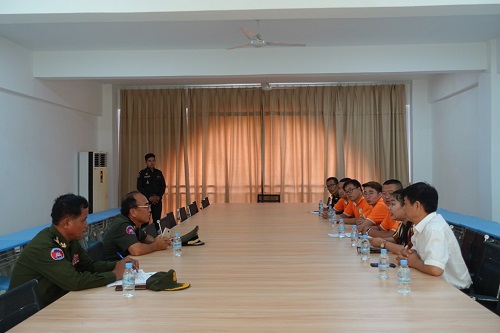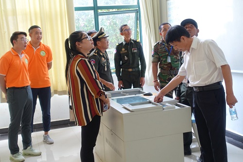 10月17日上午,柬埔寨皇家科学院孔子学院柬方院长苏碧娜(Vuth Sopheakna)、中方院长柴克清、公派教师程雨丝一行到访陆军学院汉语中心,就陆军学院的教学情况进行了较深入的交流。陆军学院院长莫云(Mam Yoeun)将军、副院长奥恒(Ngor Heang)将军和全体公派教师和志愿者给予了热情接待。