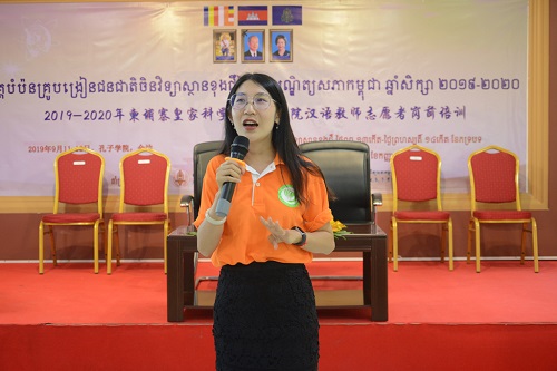 为使新任志愿者教师们更快地适应在柬埔寨的工作与生活,柬埔寨皇家科学院孔子学院于9月11日和12日举行了为期两天的汉语教师志愿者岗前培训。中国驻柬埔寨大使左文星参赞、柬埔寨皇家科学院院长宋独(Sok Touch)院士、中国驻柬埔寨大使馆一等秘书仲跻法先生、柬埔寨皇家科学院孔子学院柬方院长苏碧娜(Vuth Sopheakna)女士、中方院长柴克清先生、孔子学院总部项目官员/国家汉办志愿者管理教师来永梅女士、志愿者管理教师田金金女士、李玉立先生以及柬埔寨皇家科学院孔子学院各教学点代表、公派教师出席了本次培训。