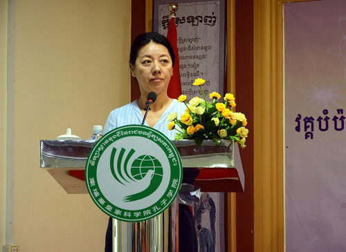 苏碧娜院长首先对各位领导的莅临表示欢迎和感谢,本次岗前培训开幕式的成功举办离不开柬埔寨皇家科学院、中国驻柬埔寨大使馆和各位汉语教师的支持。苏院长表示,随着中柬两国关系的日益密切,柬埔寨社会对汉语的需求也日益增大,柬埔寨皇家科学院孔子学院作为柬埔寨汉语教育知名品牌,为柬埔寨社会培养了大量的汉语人才,苏院长希望老师们了解并积极融入柬埔寨社会文化,感受柬埔寨人民的热情。最后,苏院长提醒各位老师注意身体,身体是革命的本钱,只有保持身体健康,才能够努力工作、实现个人价值,期待老师们精诚合作,共同筑就柬埔寨皇家科学院孔子学院新的辉煌。