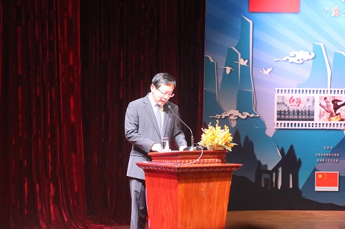 柬埔寨副首相兼议会联络与监察部大臣梅森安(Men Sam on)、中国驻柬埔寨大使王文天、柬埔寨文化部国务秘书韶索坤(SAM SOKUN)阁下、柬埔寨新闻部国务秘书谢占波立波(CHEA CHANBORIBO)阁下、柬中友协主席艾森沃(EK SAM OL)阁下以及中央广播电视总台东南亚中心副主任华春梅女士出席出此次开幕式。王文天阁下、梅森安阁下发表讲话并祝贺“第四届中柬优秀电影巡映”活动隆重开幕。