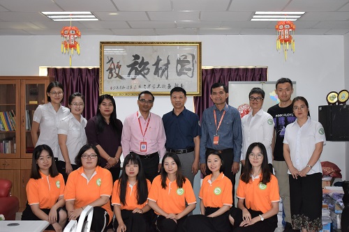 为了更好地了解各教学点教师的工作和生活情况,柬埔寨皇家科学院孔子学院中方院长柴克清先生和柬方院长苏碧娜女士(VUTH Sopheakna)于2019年10月30日上午走访慰问了亚欧大学中文系。亚欧大学副校长孙思特先生(SUN Setha)、人文学院院长宋索皮先生(SAM Sophy)、中文系负责人甘敏老师在7楼中文系办公室热情接待了两位院长,并就中文系教学情况、双方合作情况和志愿者生活安全等问题展开座谈。一同与会的还有亚欧大学中文系的四位公派教师和七位志愿者教师。