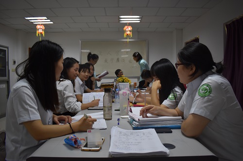 为了更好地了解教学情况,提高教学质量和教师教学能力,柬埔寨皇家科学院孔子学院亚欧大学中文系全体教师于11月29日下午在亚欧大学中文系办公室召开了本学期的第一次教学座谈会。此次座谈会由中文系负责人、公派教师甘敏组织召开,其余4位公派教师及10位汉语教师志愿者到场,共同进行交流讨论。座谈会分为志愿者教师分享、公派教师分享、全体教师共同讨论三个部分,老师们针对教学中遇到的问题进行了详细讨论,积极思考与交流,提出了多种解决对策。此次座谈历时2个半小时,气氛热烈,效果显著。