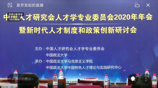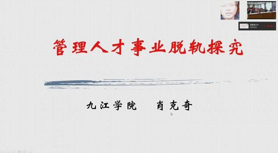 此次会议由中国人才研究会人才学专业委员会与中国政法大学马克思主义学院、中国特色人才理论与实践研究中心联合举办,因疫情防控的需要,会议采用线下+线上相结合方式。我校马克思主义学院肖克奇教授就管理人才脱轨的定义与特点、脱轨的后果与原因以及规避管理人才脱轨策略等内容进行了线上发言。