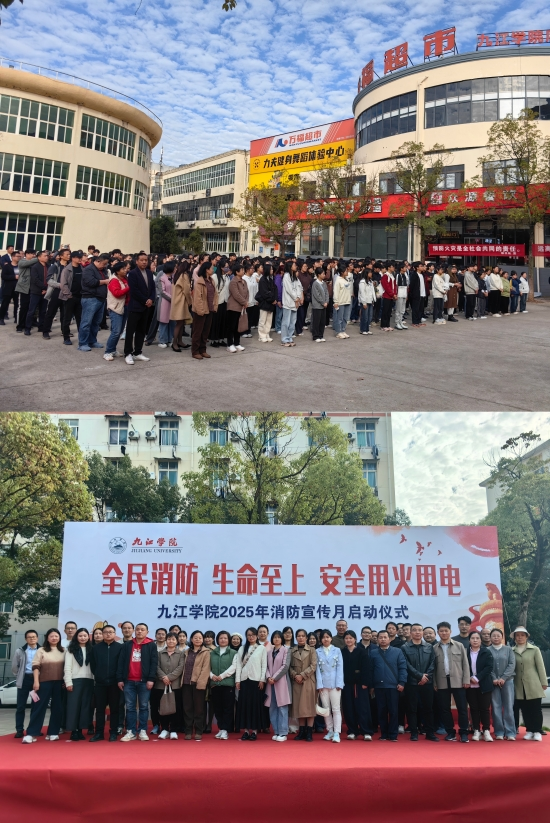 为积极推动和谐平安校园建设,提高全校师生员工的消防安全素养以及应对突发事件的能力,11月12日下午,九江学院联合九江市濂溪区消防救援大队,在学生三食堂广场举办了2025年消防宣传月活动启动仪式。校党委委员、副校长吴维勇出席仪式并作动员讲话,区消防救援大队教导员杨思强以及保卫处、实验室与教育技术中心、学生工作处、后勤管理处、机械与智能制造学院、资源环境学院等部门的相关负责人共同出席仪式。区消防救援指战员、校平安建设专兼职干部、学生代表等500余人参加了此次活动。
